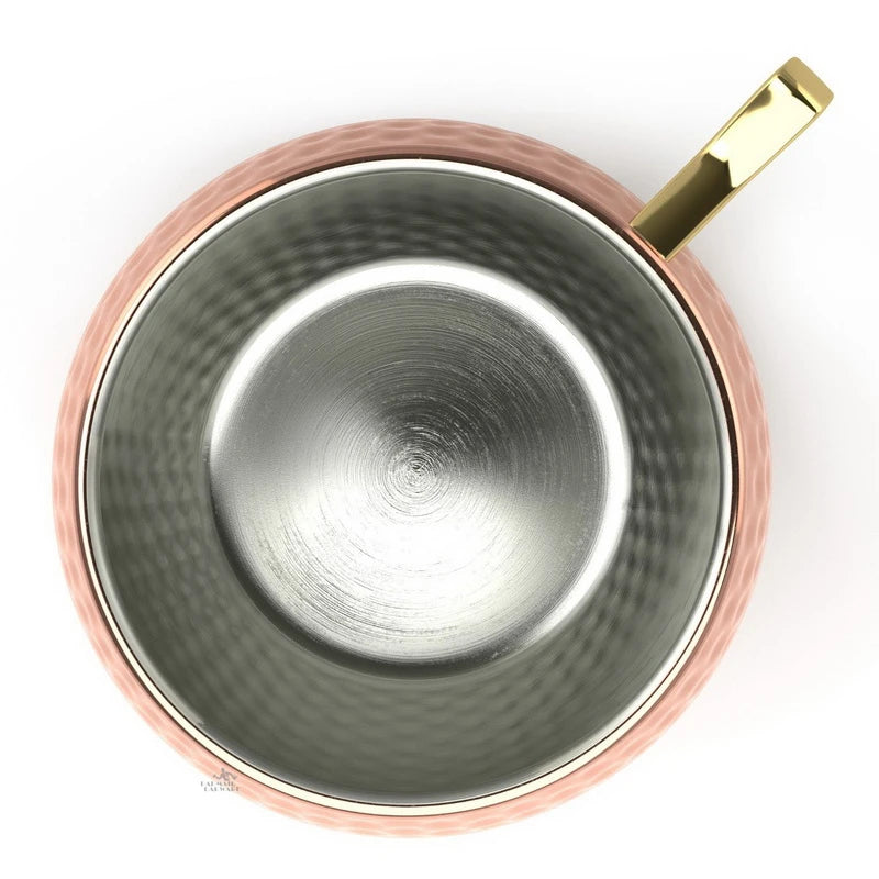 Geniet van je favoriete drankjes in stijl met deze Moscow Mule mok van 550 ml. De gehamerde afwerking en koperkleurige coating geven de beker een luxe, klassieke uitstraling die perfect past bij cocktails, bier of zelfs koffie.